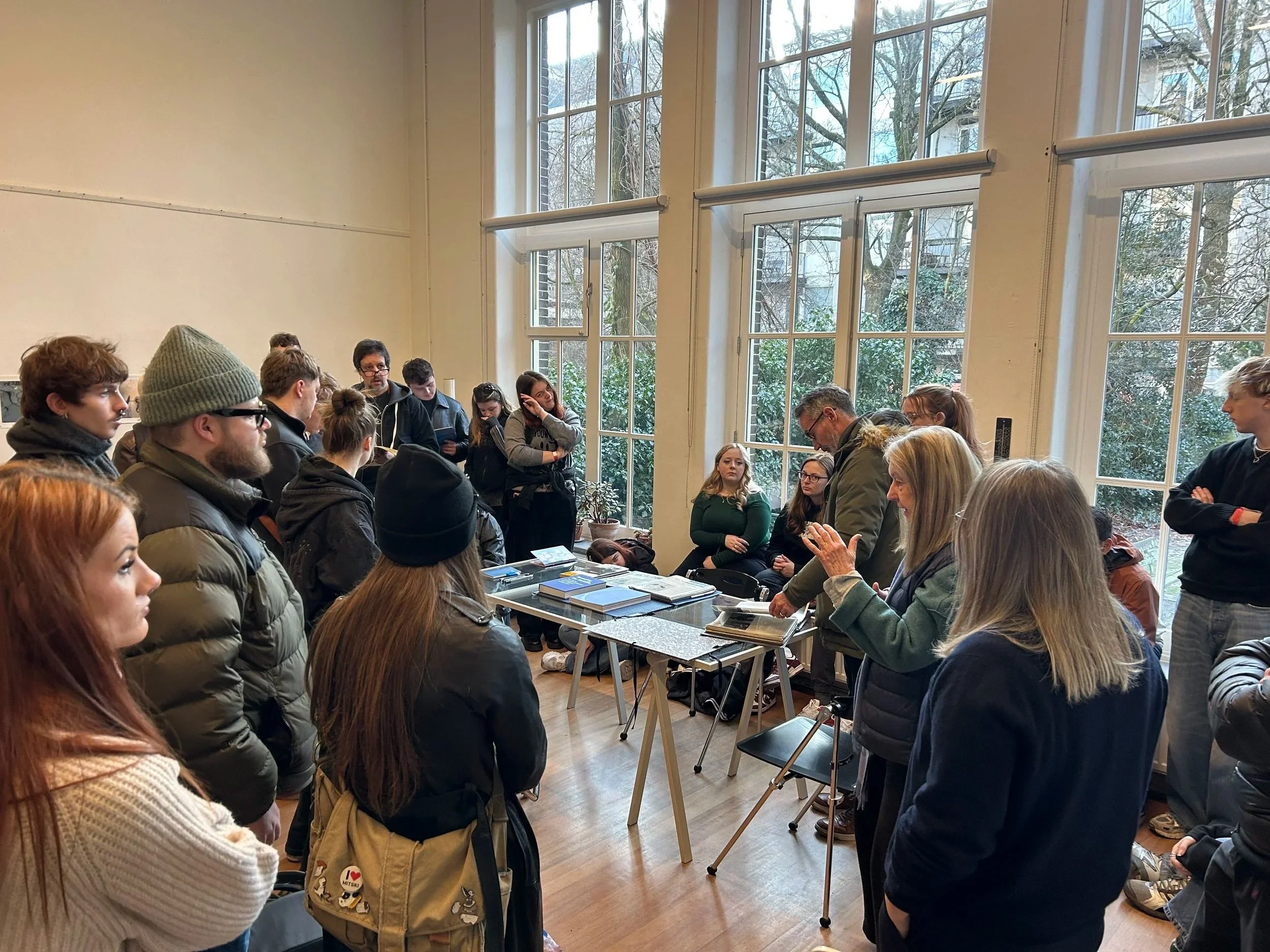 From there, the visit continued at Madelon Hooykaas’s inspiring studio, where the students were invited into her archive and working environment for an informal, behind-the-scenes encounter with her practice. As one of the few female photographers and videographers working when she began her career, Hooykaas’s pioneering perspective informed the development of her work, her research processes, and the evolution of her practice. The visit opened up a rich dialogue around experimentation, collaboration, and the realities of sustaining an artistic practice over decades.